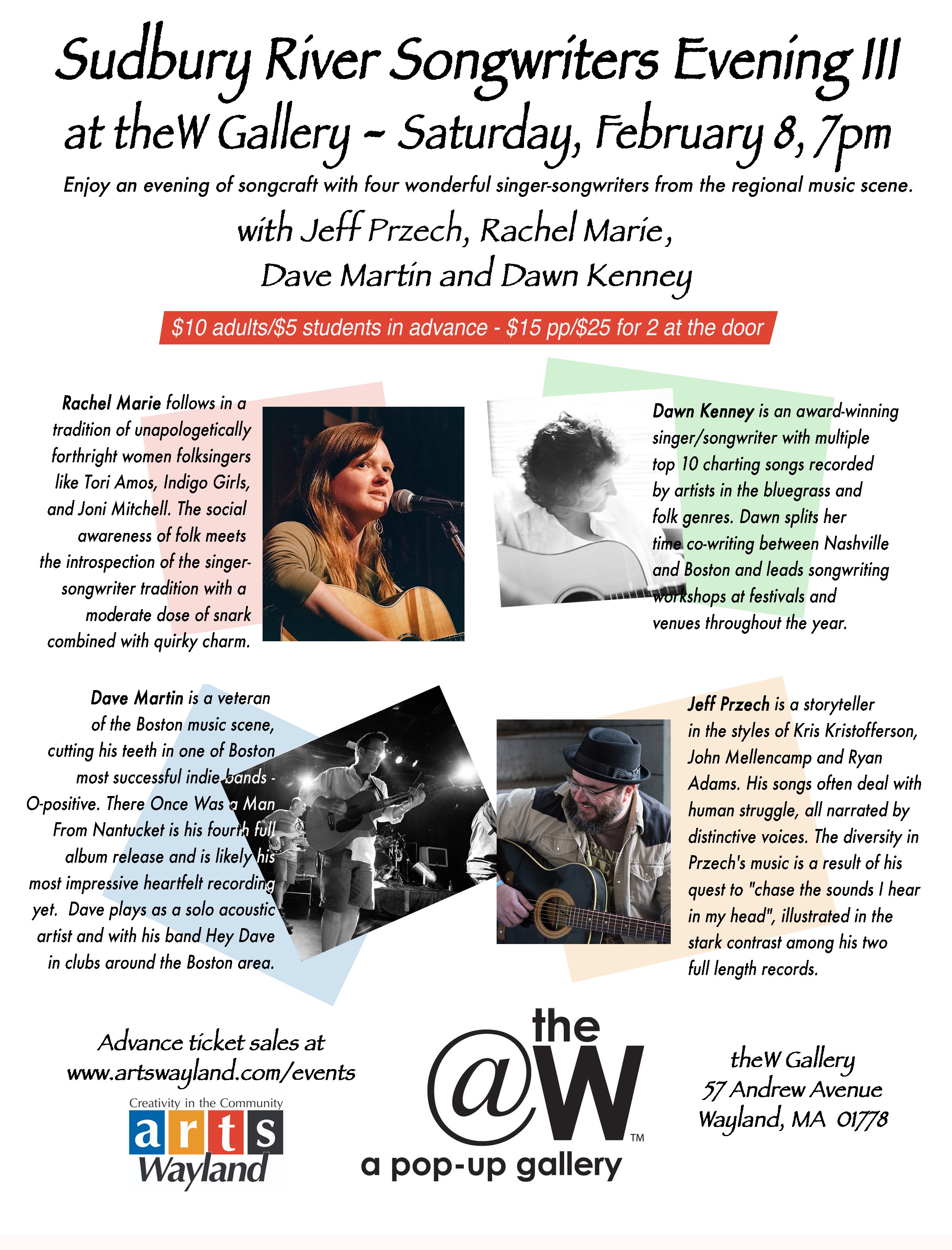 Art Making Drop In on Tuesday Afternoons Held at the W Gallery, 57 Andrew Avenue, Wayland, MA 01778 in the Wayland Town Center near Ace Hardware Day/Time: Tuesdays, ongoing- from 1pm to 4pm Duration: estimate this will go to end of May Fee: $5.00 online or in person (cash, check) Bring your materials to work […]